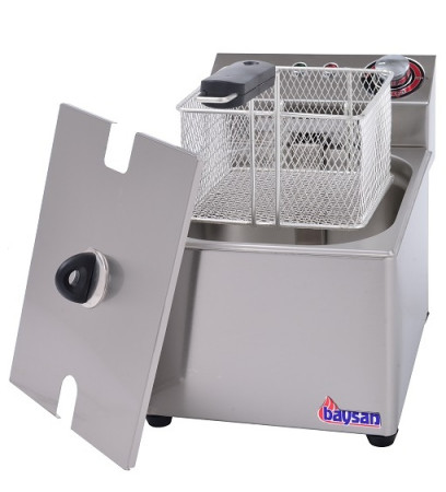 Endüstriyel patates kızartma makinesi 5 litre kapasitelidir. Kızartma haznesi 1/2 150 mm gastronorm küvetten oluşmaktadır. Büfeler,restaurantlar, oteller ve benzeri işletmeler için tasarlanmıştır. 220 V şebeke elektriği ile çalışmaktadır. Kızartma makinesinin gövdesi paslanmaz çelik plakadan üretilmiştir. Sanayi tipi fritöz modelleri arasında en fazla tercih edilen ürünlerin başında gelmektedir. Avrupa standartlarına uygundur. Farklı modellerdeki sanayi tipi fritöz fiyatları için sitemizdeki ürünleri inceleyebilirsiniz.