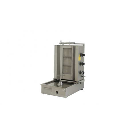 Döner makinası 3 gözlüdür. İthal seramik radyan taşları kullanılmıştır. Makinanın gövdesi 304 kalite paslanmazdan üretilmiştir. Makinanın motor aksamı tepsinin alt tarafında konumlandırılmıştır. 220 V şebeke elektriği ile çalışmaktadır. Isıtıcı radyanlar doğalgaz ile çalışmaktadır.Ürün CE belgesine sahiptir. En fazla tercih edilen otomatik döner makinalarından birisidir.