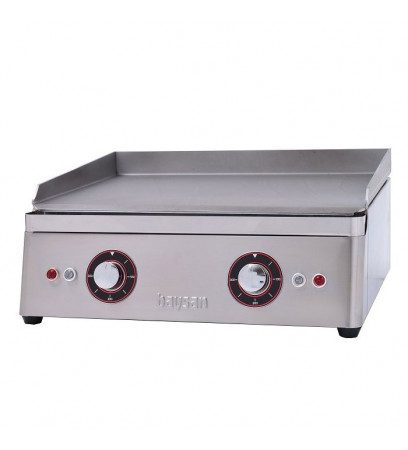 Elektrikli plate ızgara 50 cm genişliğindedir. Köfte,hamburger,tavuk,balık gibi hazır ve dondurulmuş gıdaların pişirilmesi amacıyla kullanılır. Plate ızgara ocağı elektrik ile çalışır. Makine üzerinde 2 adet elektrikli termostat kontrollü ısıtıcı rezistans bulunmaktadır. Avrupa standartlarına uygundur. Ce belgelidir. Temizliği ve bakımı son derece kolaydır. Gövdesi paslanmaz sactan üretilmiştir. Orta yoğunluktaki işletmelerin taleplerini karşılayabilecek ölçülerdedir. Elektrikli plate ızgara ocakları içerisinde en fazla tercih edilen modellerdendir.