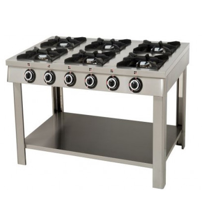 Paslanmaz lokanta ocağı 6 gözlüdür. CE belgelidir. LPG ile çalışır. Avrupa normlarına uygundur. Emniyet ventilli güvenlik sistemi mevcuttur.